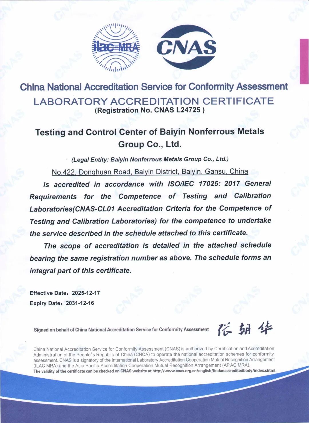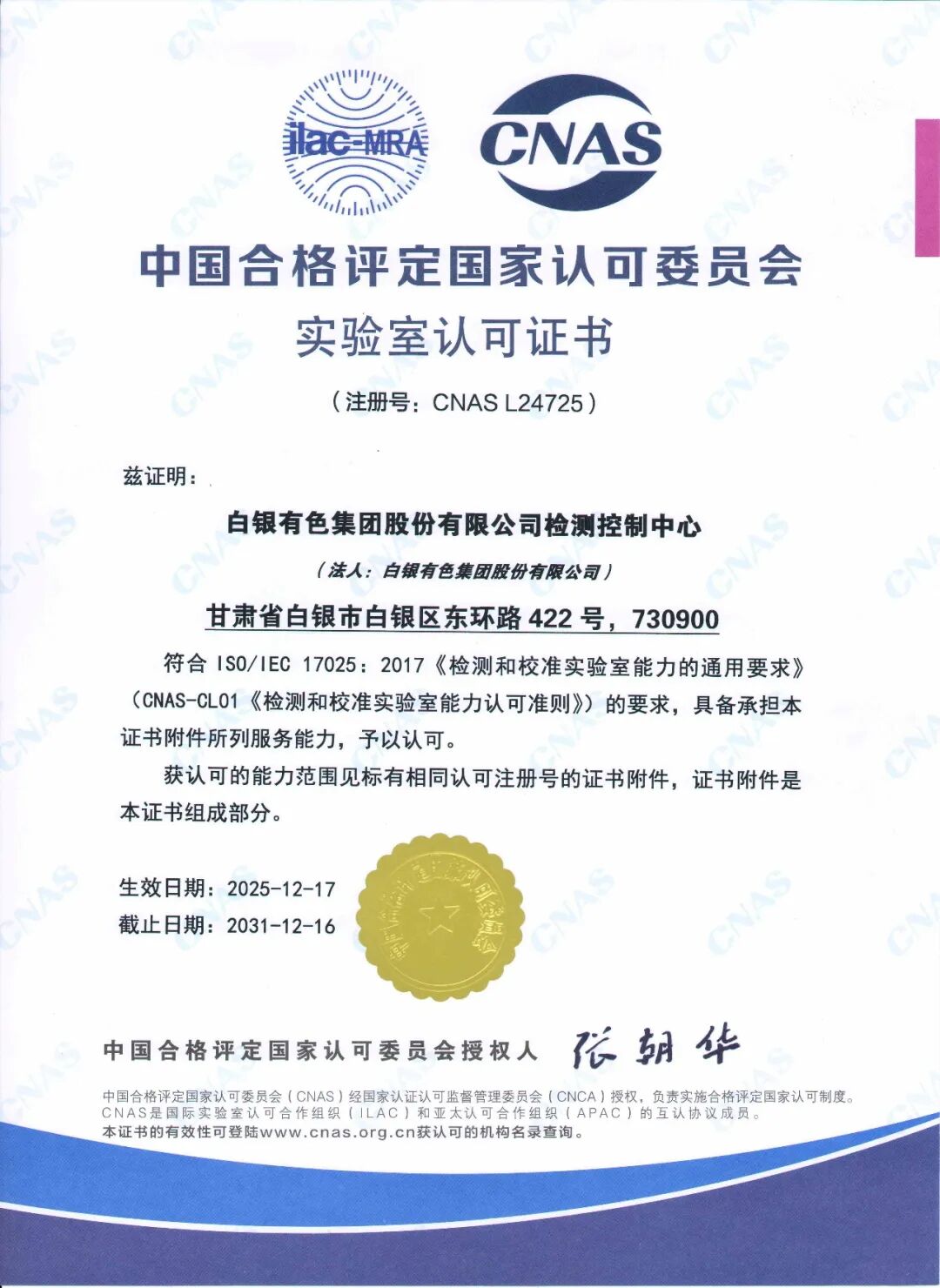 日前,检测控制中心顺利通过中国合格评定国家认可委员会(CNAS)的严格评审,获得CNAS实验室认可资质,标志着检测控制中心在质量管理体系建设、核心检测技术能力、专业人才队伍水平等方面,已达到行业第一梯队水平。